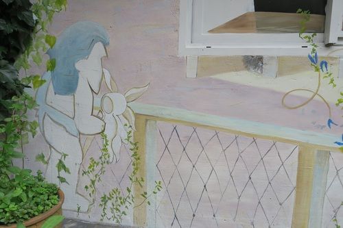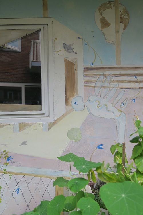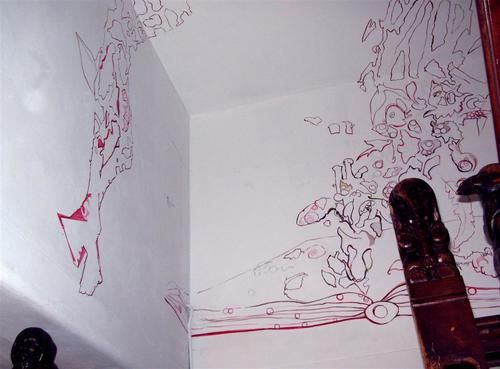 De muurtekeningen maak ik zowel buiten als binnen.